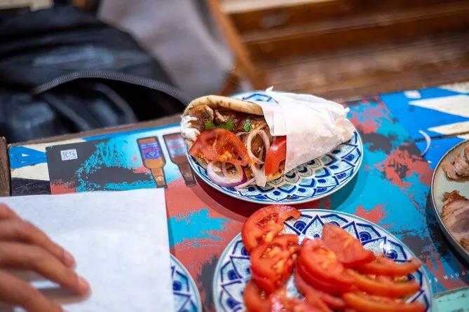 Yes, you’ll enjoy several tastings including gyros or souvlaki with pita bread as part of lunch.