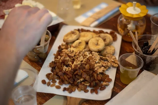We wandered through the old streets of Athens after that, past shopkeepers stacking olives and men arguing gently over soccer scores. Psiri felt different from Monastiraki — less touristy somehow, more like people actually lived there. Our guide (Maria again) waved at a friend running a bakery and handed us pieces of bougatsa pie straight from the oven. Flaky pastry everywhere; I got powdered sugar on my shirt. We stopped at a family-run deli for cheese and cured meats — sharp feta, something soft and tangy I can’t pronounce — plus a sip of Greek wine that tasted almost salty. It’s funny how food makes you notice things: the clang from the market stalls, oregano in the air, even the way everyone gestures when they talk.