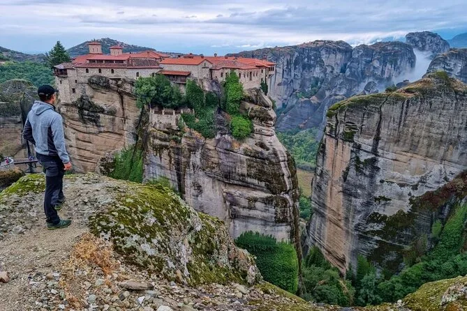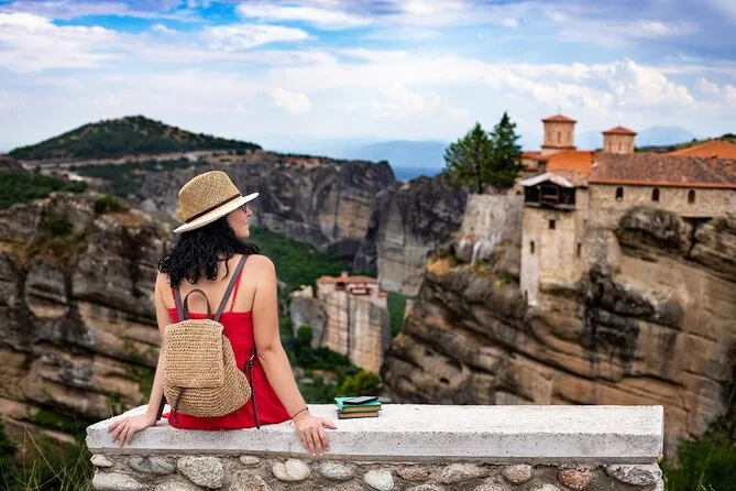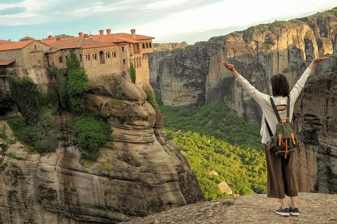 Your day includes comfortable transport from Athens with WiFi and USB chargers onboard, guided visits inside three Meteora monasteries plus photo stops at all six sites, exclusive access to Badovas hermit caves only on this tour, coastal stopovers for brunch and dinner right by the water (meals optional), entry fees not included so bring cash for monasteries, plus an optional Greek lunch in Kastraki village with choices for all diets before heading back late evening.