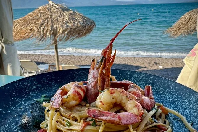 Lunch at a traditional taverna in Kastraki is included with some booking options; seaside brunch and dinner stops are optional and paid separately.