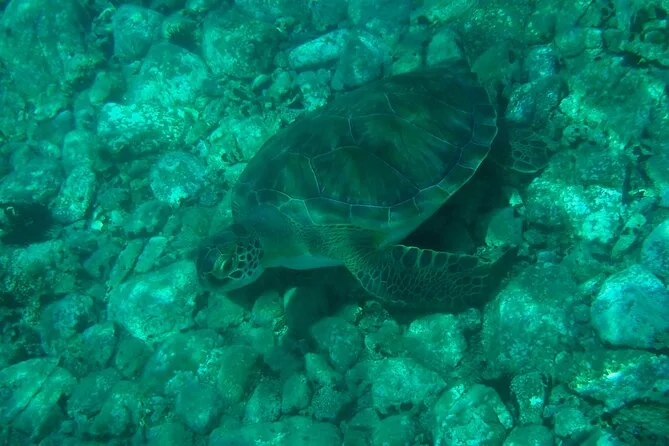 You may encounter sea turtles along the coastline or near the secluded beach stop.
