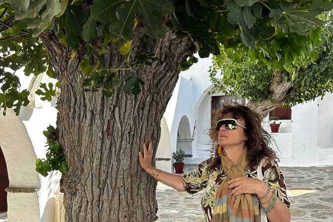Little Venice was next—those balconies nearly hanging over the water. I could hear plates clinking from a café just opening up. The windmills were right there too, their sails creaking in the breeze. Honestly, I’d seen them in photos but up close they’re rougher and more solid than I expected. After that we hopped into a van and drove out past fields dotted with goats (one goat stared at me so long I started laughing). The monastery in Ano Mera was all quiet marble and incense; Eleni showed us how to spot the oldest stones in the courtyard—she seemed proud of that place.