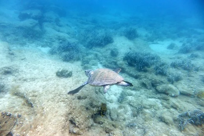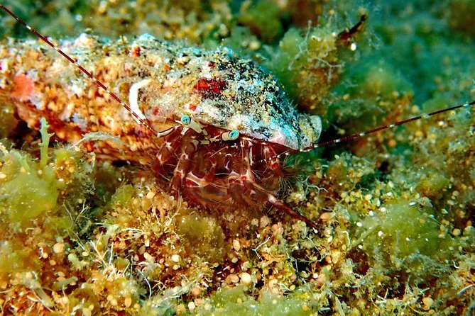 Walking into the water from shore is gentler than I expected. The sea was cool but not shocking, and there’s this muffled hush as soon as you go under—suddenly it’s just your own breathing and little flashes of silver fish darting past. We only went about six meters deep, but it felt like another world already. At one point Yiannis pointed out a tiny octopus hiding in some rocks; I tried to wave at it (not sure why) and nearly lost my mouthpiece laughing underwater. That moment sticks with me—how small things look different when you’re floating above them instead of standing on sand.