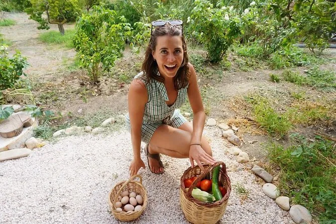 Your day includes meeting friendly farm animals near Melanes village in Naxos, picking fresh vegetables and eggs alongside locals, tasting seasonal fruits straight from the trees plus extra virgin olive oil from their groves. You’ll cook traditional recipes over a wood fire with guidance from a Naxian grandmother before sharing a homemade lunch featuring house wine and coffee or tea—all prepared together from ingredients gathered that morning.