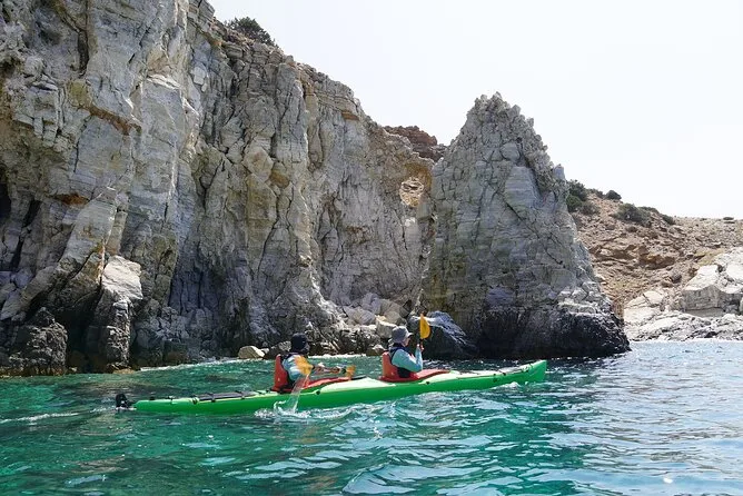 Your day covers all kayaking equipment (including life jackets and dry bags), paddling instructions from a qualified guide certified by British Canoeing, plenty of fresh drinking water per person, full use of snorkeling gear at each beach stop plus snacks and a homemade meal featuring local vegetables and Naxian cheese — even coffee is part of it before you return to Kalantos Beach for one last swim.
