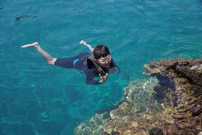 The tour lasts about six hours total, including paddling and time spent on beaches for swimming, snorkeling, snacks, lunch, and coffee.