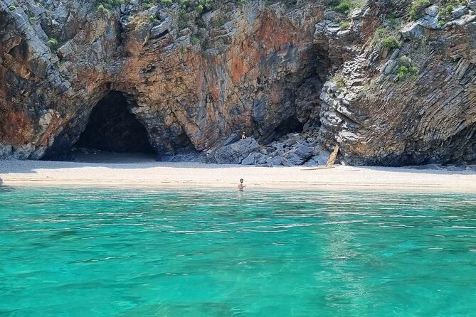 You’ll ride a small boat along Pelion’s east coast with a local skipper, stopping at Damouchari’s historic cove, swimming near underwater springs at Agios Athanassios Bay, exploring Fakistra Cave’s cool shadows, and gliding past famous beaches like Mylopotamos. Expect salty air, movie scenery, and moments of real quiet between stops.