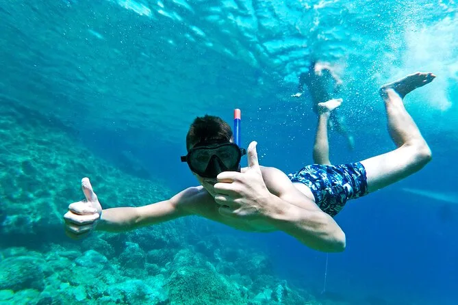 Your day includes use of snorkeling equipment so you can jump right into those clear waters whenever you feel like it—and bottled water to keep you going between stops. The local skipper handles everything else while you just watch Pelion slide by from your spot on deck.