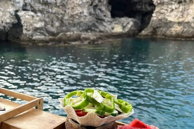 Lunch was grilled right on deck — fresh fish for some, chicken for others (I went for both because why not). There was Greek salad too, plus cold beer that tasted way better after swimming. The crew poured wine like it was water and joked with us about our “big catches.” At some point I realized my shoulders were already sunburned (should’ve listened when they offered extra sunscreen). Anyway, we sat there eating with our feet dangling off the side of the boat while the breeze dried us off. It felt simple and kind of perfect.