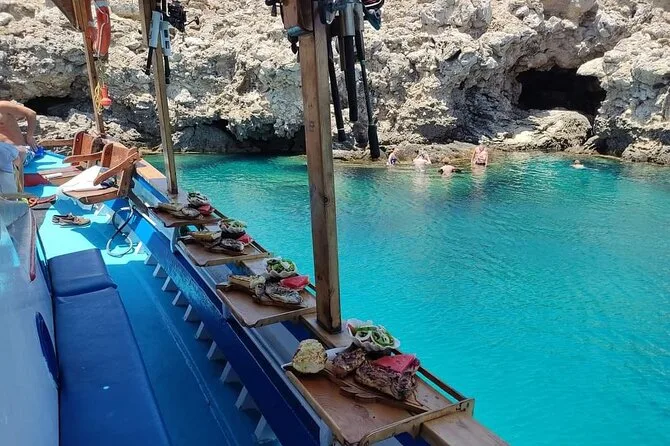 Your day includes all fishing equipment with friendly guidance from locals, plenty of time to swim or snorkel at Kalithea caves’ beaches, plus a freshly grilled BBQ lunch featuring fish or chicken alongside Greek salad and unlimited beer, wine or soft drinks served right onboard before heading back to Rhodes port together.