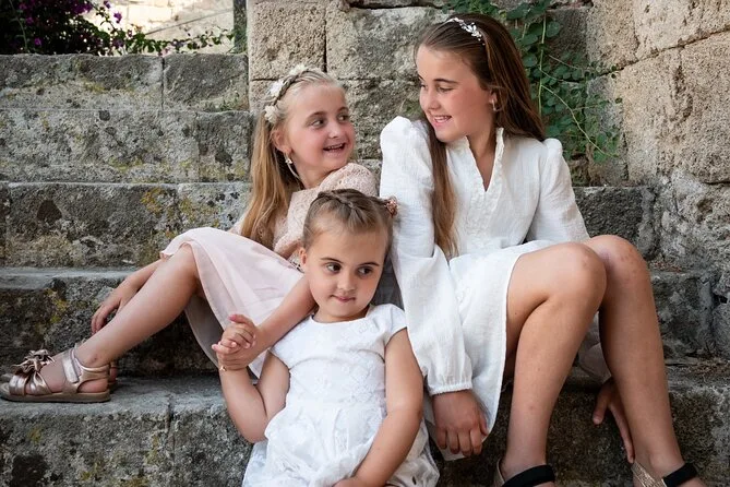 Your experience includes an hour-long private photo session in either Rhodes Old Town or by the sea at Kato Petres Beach (your choice), with all images professionally edited—expect 100-120 digital files delivered within seven days via file share. Flexible timing is available if you’re arriving from a cruise ship or need special arrangements; families and small children are welcome too.