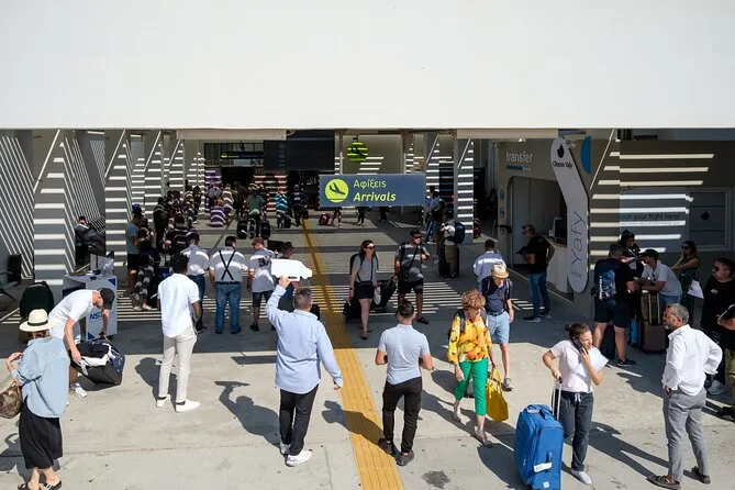 You’ll be greeted by your driver inside Santorini Airport—no hunting for taxis or buses—and taken straight to your hotel in an air-conditioned private van. With flight monitoring and unlimited luggage included, you can relax even if your arrival is late or delayed. It’s an easy way to start your trip feeling welcomed—and maybe pick up a local tip or two along the way.