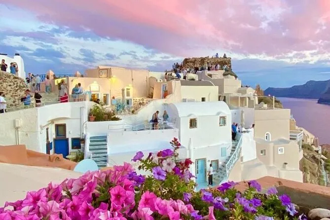 Your day includes direct pickup from Athinios Port (no sky tram needed), small group transport by air-conditioned van with a certified English-speaking guide, visits to Firostefani, Oia, Megalochori village and Perivolos Beach with flexible timing at each stop before returning smoothly to your cruise tender spot—so you don’t have to worry about logistics at all.