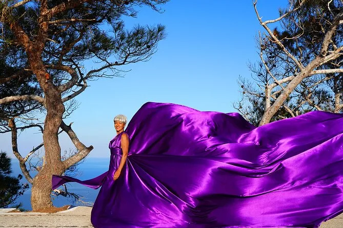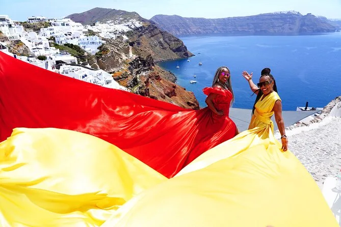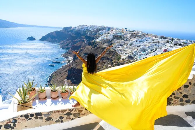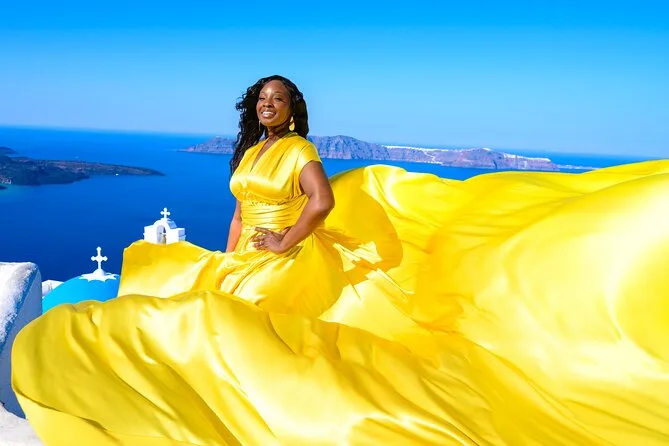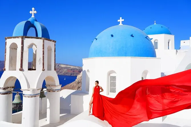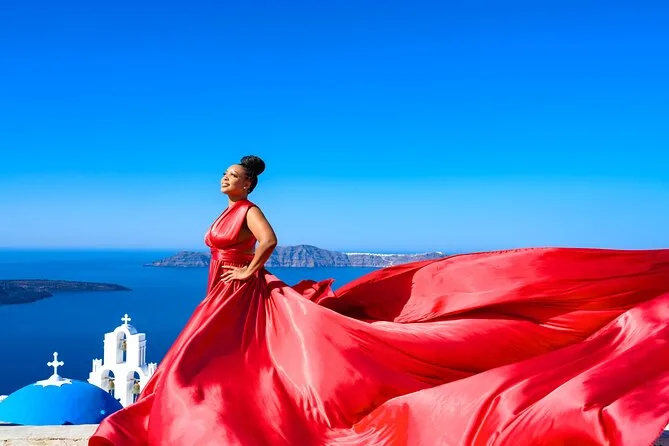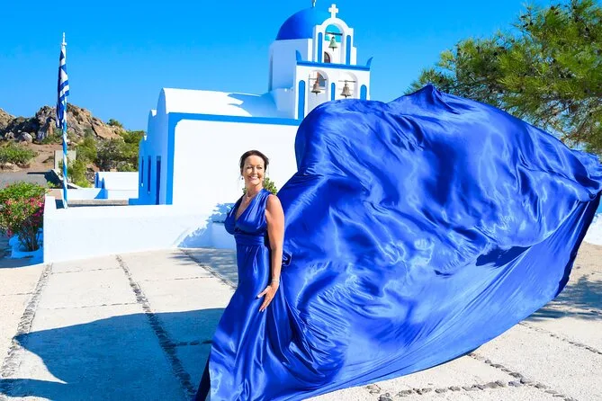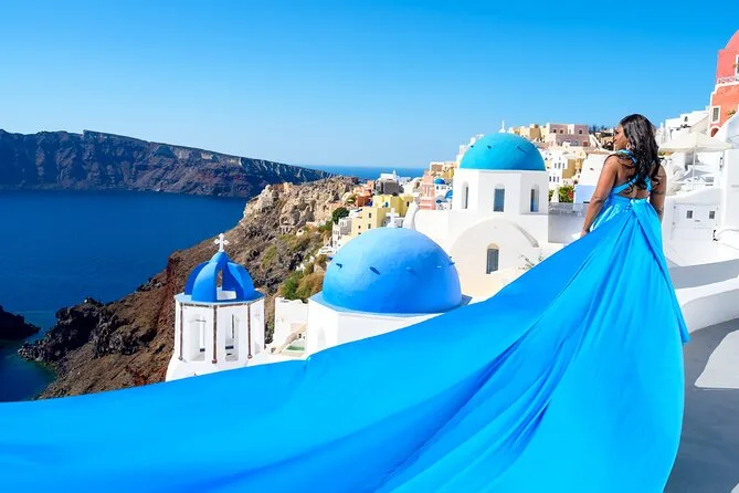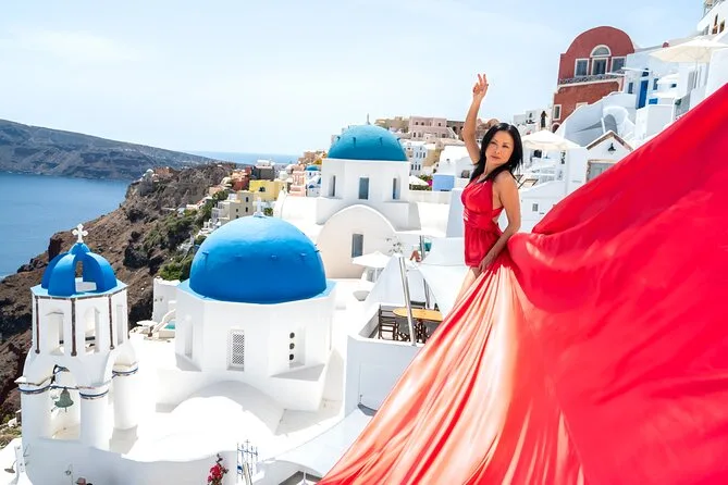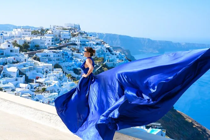 You’ll step into a bold flying dress and wander Santorini’s Firostefani village as a local photographer guides you through iconic blue dome spots. Expect laughter, wind-tossed fabric, gentle posing tips, and plenty of curious glances from passersby. You’ll leave with twenty beautifully edited digital photos—and maybe a new favorite memory every time you see them.
