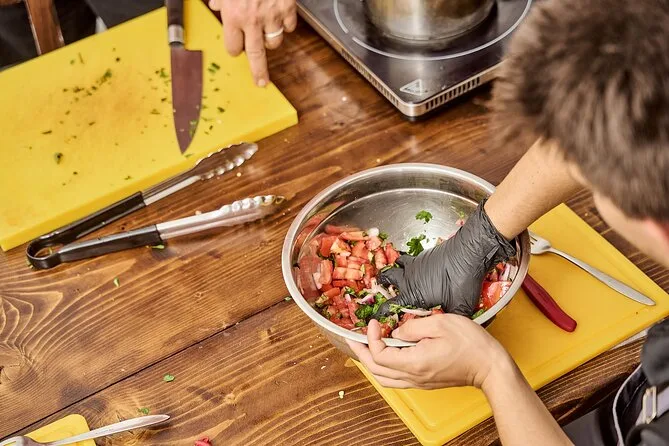 Your day includes bottled water throughout the hands-on cooking class led by an expert chef in Santorini; all ingredients; full recipes sent by PDF after; lunch featuring your own creations; local Santorinian wine; plus gluten-free and vegetarian options if you need them.