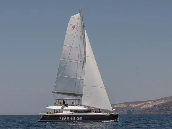 Santorini: Luxury Catamaran Cruise, BBQ & Drinks with Pickup