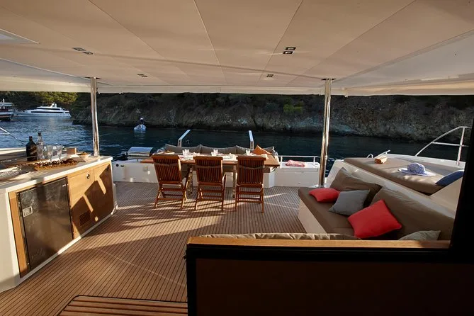 You’ll sail Santorini’s caldera on a luxury catamaran with a small group, stopping to swim at Red Beach and White Beach and soak in volcanic hot springs. Enjoy a Greek BBQ lunch with drinks on deck as your local crew shares stories and music drifts over the water. Expect laughter, sea air, and moments you’ll remember long after you dry off.