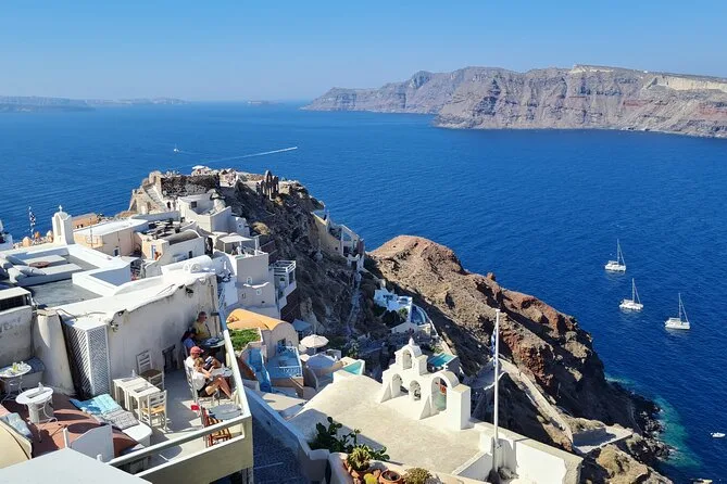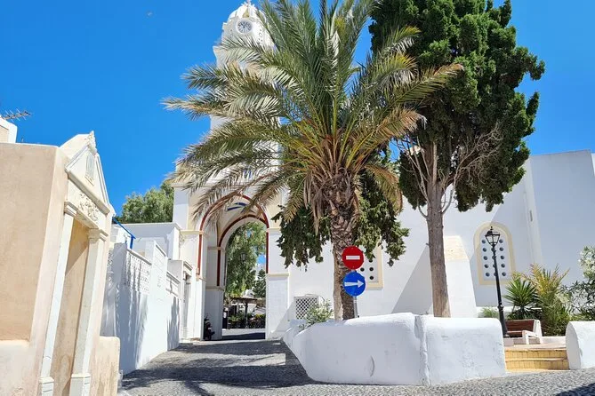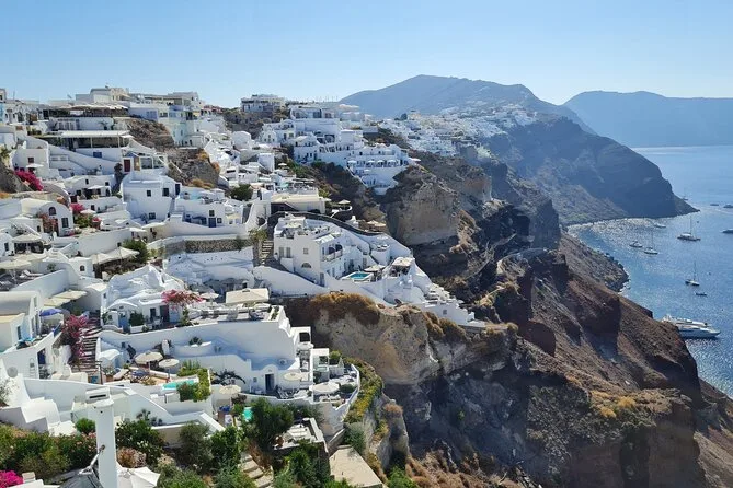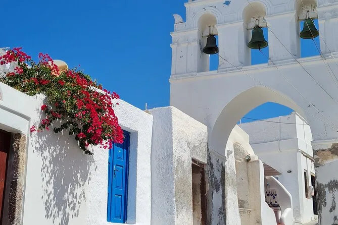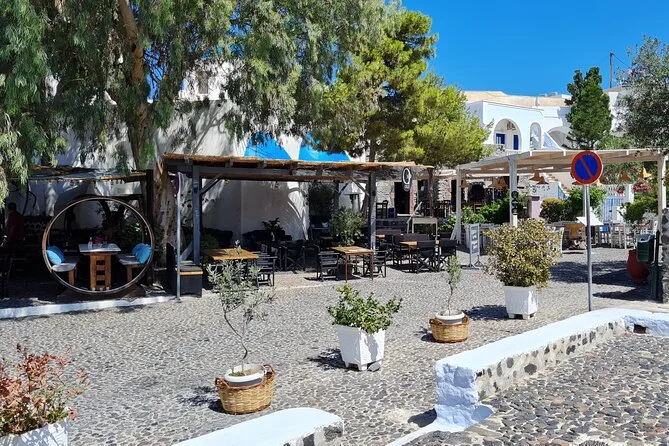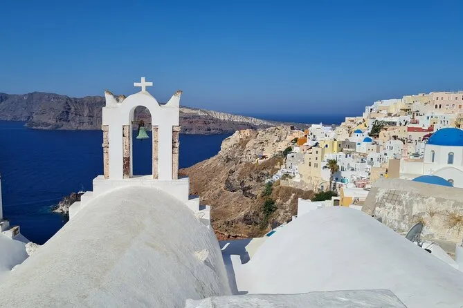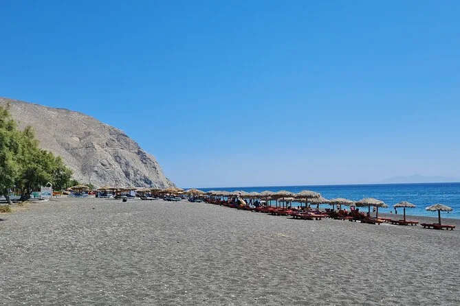 This is a full-day tour covering several villages and beaches across Santorini.