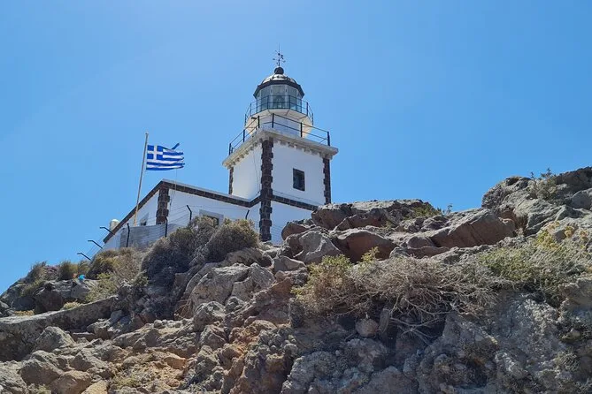 Afterwards we drove up to Prophet Elias Monastery at the highest point of Santorini. The air changed up there — cooler somehow, with wildflowers around the old chapel and this silence that makes you want to whisper. You can see everything: vineyards rolling down one side, caldera on the other, sea everywhere else. On the way back we stopped at Akrotiri Lighthouse for sunset; Dimitris said locals come here when they want peace away from town. I still think about that view sometimes — pink sky fading into blue-black water, just quiet except for someone laughing nearby.