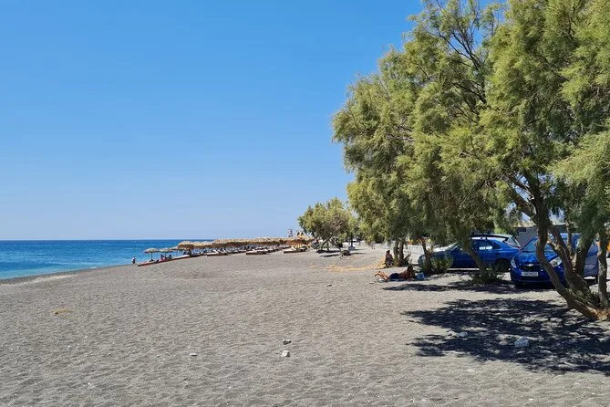 You can swim at Black Sand Beach (Perissa), with time allocated for relaxing or water sports.