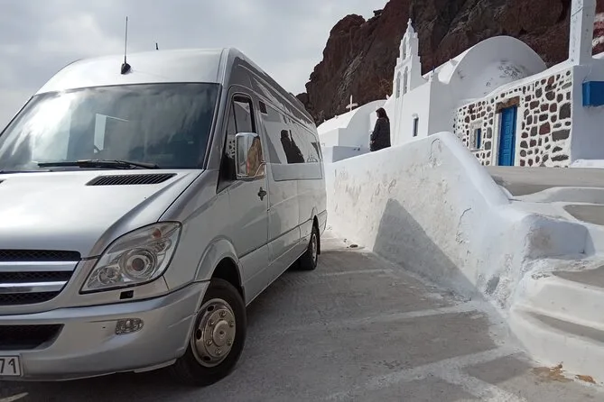 Your day includes private transportation in an air-conditioned vehicle with onboard WiFi; pickup and drop-off from your hotel, airport or cruise port; a dedicated local guide who’ll help shape your itinerary; plus plenty of flexibility to linger longer where you want—whether that’s at Oia’s blue domes or over lunch by Perissa Beach.