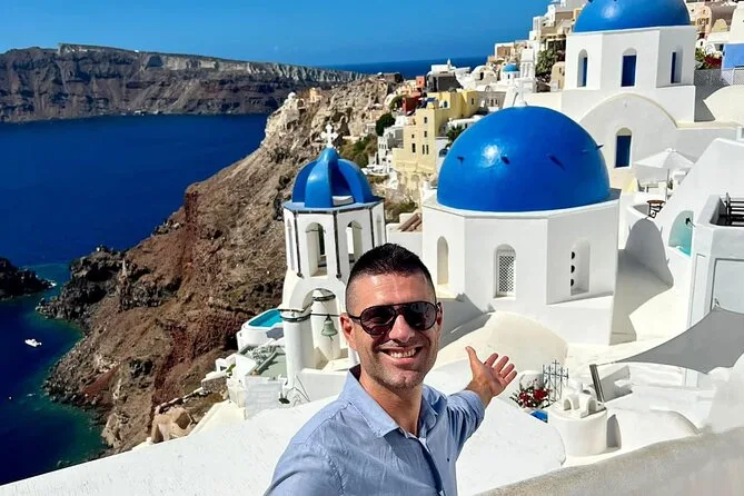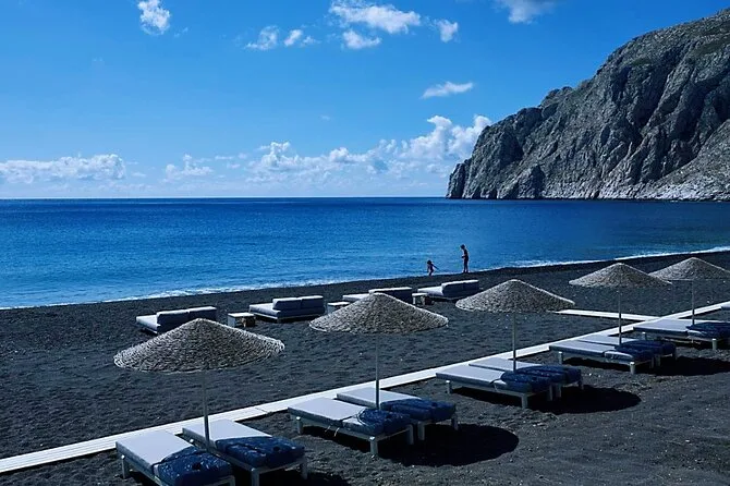 Your day includes private air-conditioned transport with bottled water throughout, pickup and drop-off from your hotel, cruise port or airport, plus a friendly local driver who helps shape your itinerary as you go—so you get both comfort and flexibility while exploring Santorini’s villages and volcanic beaches.