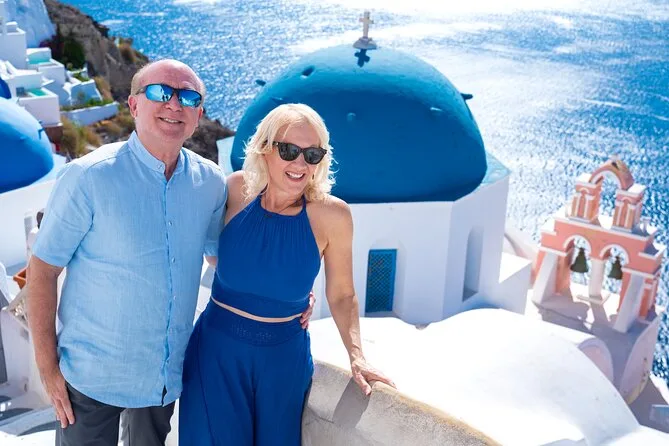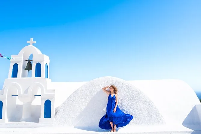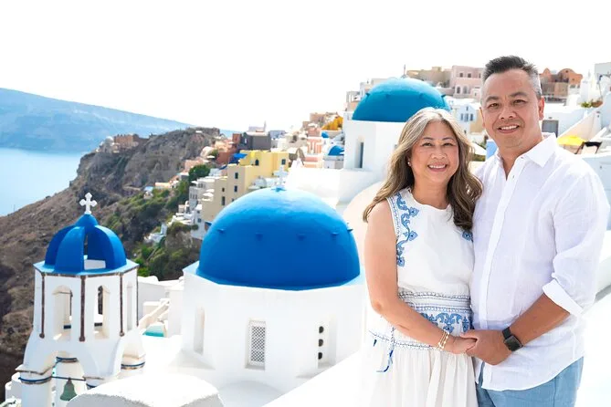 Your day includes pickup and drop-off in luxury vehicles with your local photographer guiding you through Oia, Firostefani, Imerovigli, and even a black sand beach; you’ll receive 70 professionally edited digital photos via download link after your private session—all taxes and service fees are covered too.