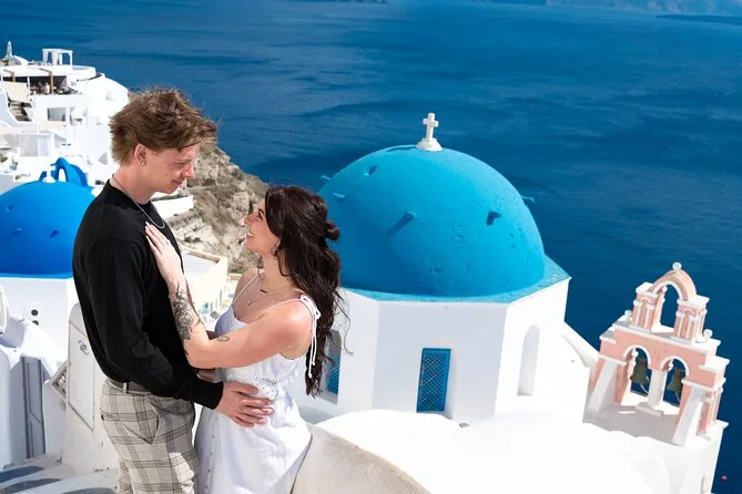 “You see that dome? Everyone wants that shot — but let’s try something different,” said Yannis, our photographer, as we squeezed past a couple posing on the steps in Oia. I’d seen those blue domes in a thousand photos, but standing there, the white walls almost glowing in the late morning sun, it felt different. The air smelled faintly of sea salt and sunscreen, and I kept blinking because the light bounced off everything. Yannis had us pause by a quiet alley — he said it was his favorite angle. I think he liked how awkward we were at first; he cracked a joke about my partner’s sunglasses being “very Greek movie star.” It worked — we relaxed, and somehow those first few photos didn’t feel staged at all.
