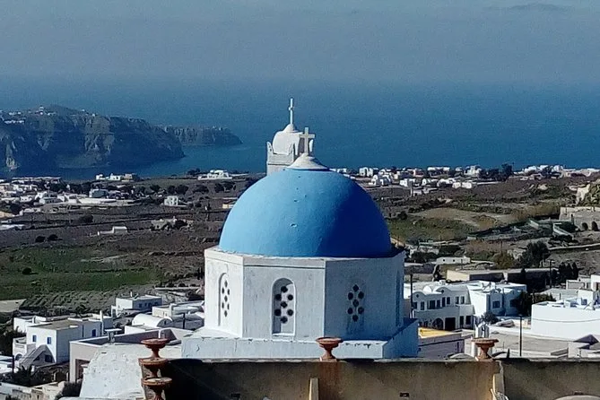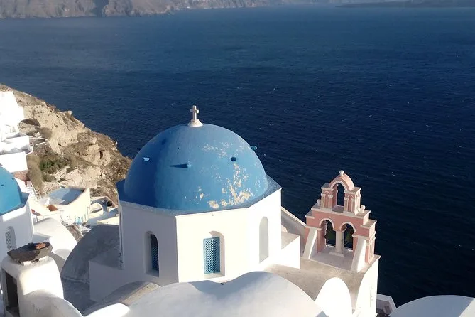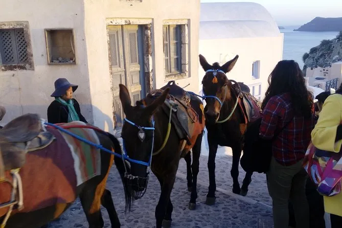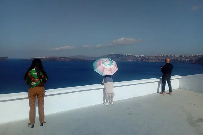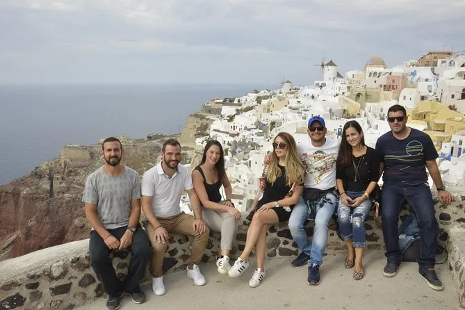 The tour lasts a full day with pickup in the morning and return after sunset in Oia.