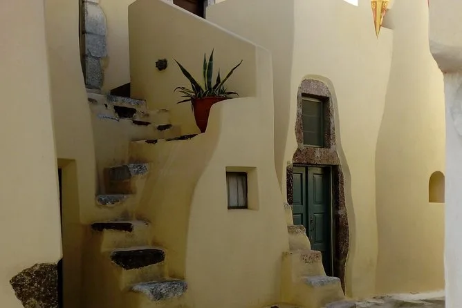You’ll climb Pyrgos Castle for sweeping island views, wander Megalochori’s winding streets (with music if you’re lucky), swim at Perivolos black sand beach, sip wine in an old cellar near Emporio’s Venetian castle, then end up watching sunset from inside Oia’s ancient walls. It’s a full day of real moments — not just postcard shots.