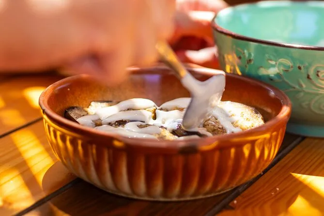 Your morning includes all drinks—coffee or mountain tea to start plus water and juice throughout—and ends with a full homemade lunch paired with complimentary local wine. The chef provides recipes to take home so you can try everything again later.