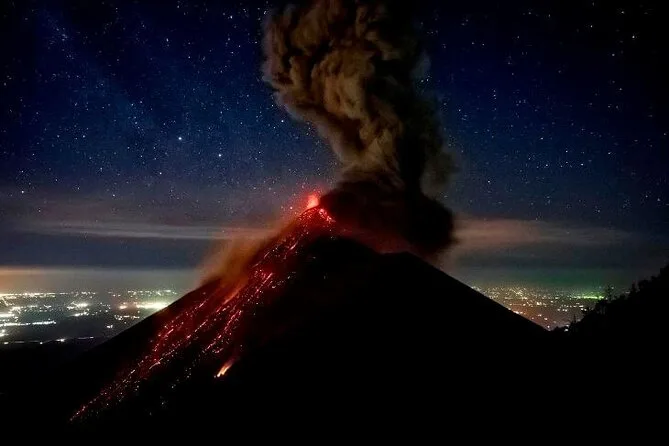 You’ll climb Acatenango with local guides from Antigua, camp overnight in cabins facing erupting Fuego volcano, share hot meals by a crackling fire, and reach the summit before sunrise for views that stick with you long after you’ve left Guatemala.