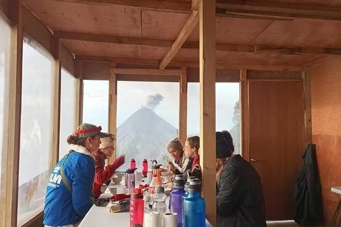 Your trip includes private transport from Antigua to the trailhead and back again after your descent; all meals (lunch and dinner) prepared fresh at base camp; overnight accommodation in cabins with direct views of Fuego volcano; free rental gear like warm clothing layers and headlamps; plus guidance from bilingual local experts who know every twist of this mountain path.
