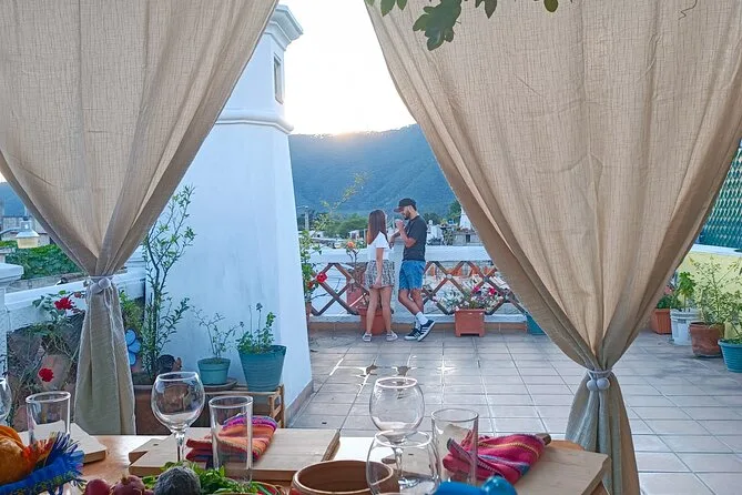 Your day includes sampling exotic fruits at Antigua’s vibrant market with a local guide before heading by private transport to a rooftop kitchen where you’ll cook five traditional Guatemalan dishes together. Recipes are shared along with two glasses of wine per person plus natural drinks like lemonade or hibiscus tea; lunch is everything you’ve prepared yourself before drop-off right by Antigua’s iconic Arch.