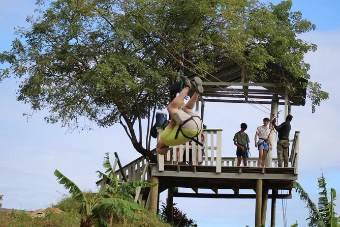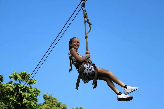The activity length isn’t specified but includes both zip lining and time at the animal sanctuary; plan several hours total.