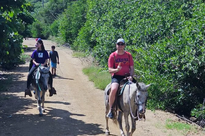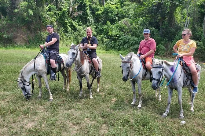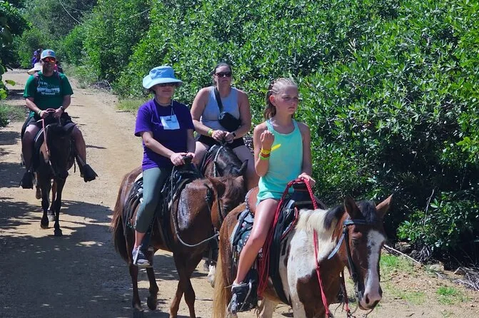The exact timing varies but you’ll have time for each: mangrove tour by boat, horseback riding near the beach, then snorkeling break.