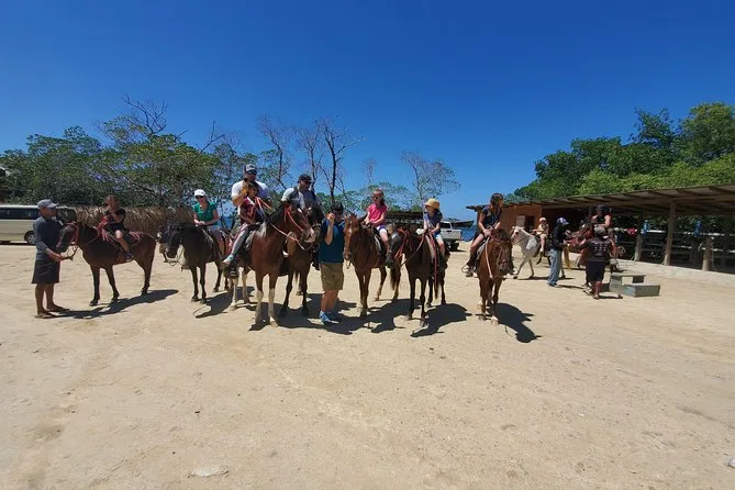 Your day includes transportation with pickup outside your main gate, entry to the sloth and monkey sanctuary with a local guide who’ll share stories about each animal, an hour-long horseback ride through jungle trails or along the beach (depending on port location), plus time aboard a glass bottom boat viewing Roatan’s coral reef before heading back—lunch stops are optional if you want them.
