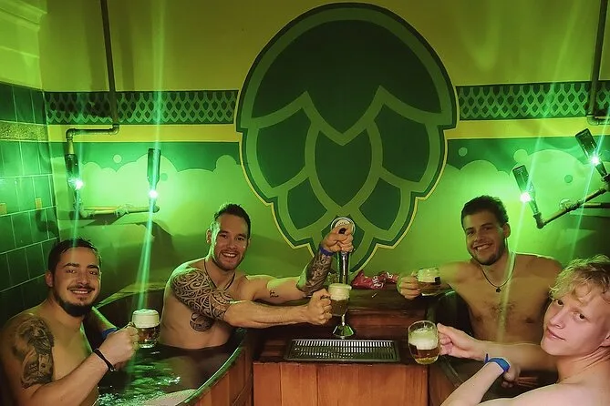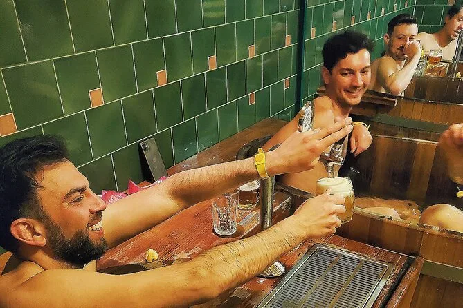 I still smell the hops on my skin. The first thing that hit me wasn’t the beer (though, yeah, there’s a tap right by your tub — dangerous), but this warm, yeasty scent rising from the water. Our guide, Zsófi, grinned when I asked if I’d come out smelling like a brewery. “Only a little,” she said. You settle into this wooden tub — not fancy, just solid — and suddenly you’re floating in what feels like bread dough gone spa-level. The draft beer is cold and foamy, which is weirdly perfect when you’re soaking in hot water. My friend tried to pour it one-handed and made a mess; nobody cared.