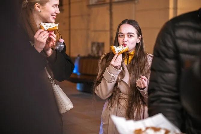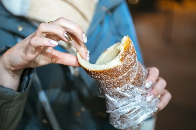 Yes, you’ll walk along Váci Street with stops for street food like langos and chimney cake.