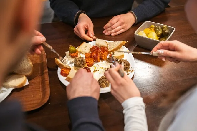 Your evening includes over 14 tastings—from sausage at a beloved butcher shop to goulash at a local restaurant—plus street food stops for langos and chimney cake along Váci Street. You’ll enjoy Hungarian wines or palinka (with non-alcoholic choices), dessert at a cozy taverna, all fees and taxes covered—and you can request special dietary needs ahead of time too.