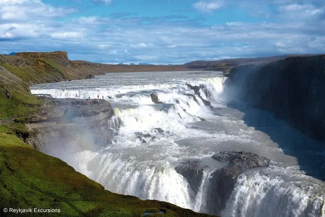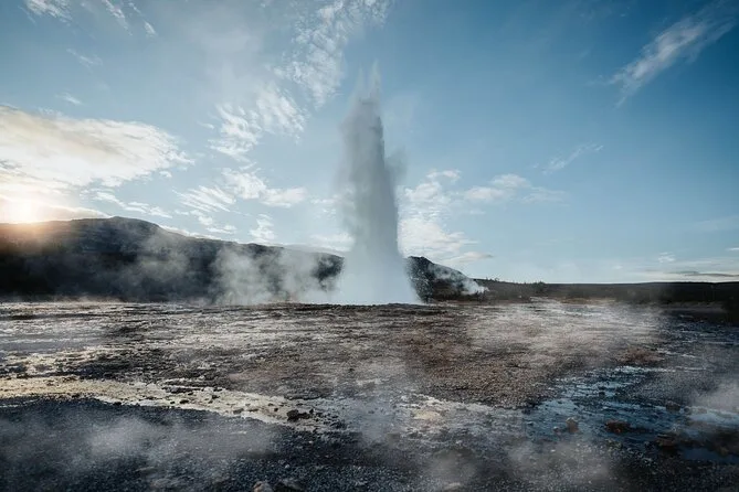 You’ll visit Fridheimar greenhouse, Geysir geothermal area (including Strokkur), Gullfoss waterfall, and Thingvellir.