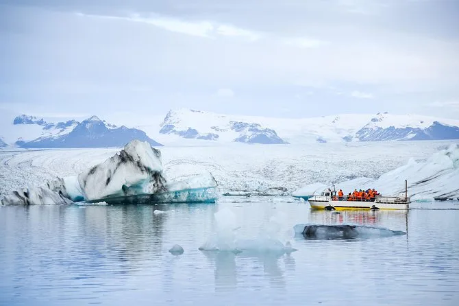 Your journey includes pickup and drop-off in Reykjavik, one night’s accommodation with breakfast on Iceland’s south coast, free Wi-Fi and USB charging onboard the bus, a guided hike on Sólheimajökull glacier with all safety gear provided (crampons, axes), an amphibious boat tour among Jokulsarlon's icebergs—and plenty of local stories along the way.