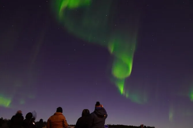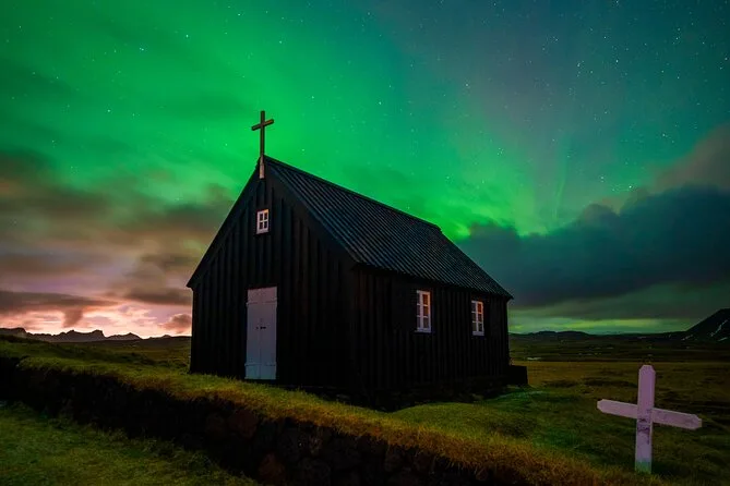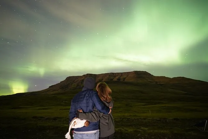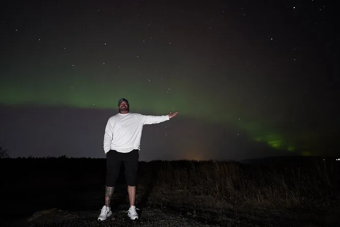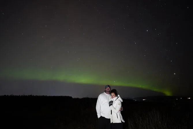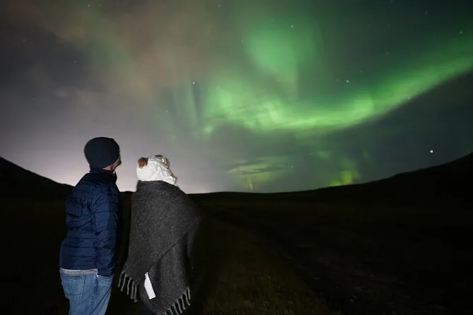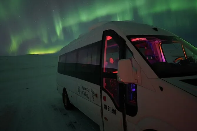 Your evening includes pickup from Reykjavik by heated minibus, guidance from a local expert who chases down clear skies each night, professional-grade aurora photography (with fun Viking props if you want), plus hot chocolate and gingerbread cookies whenever you need to warm up—and unlimited free retries if you don’t catch the lights on your first try.