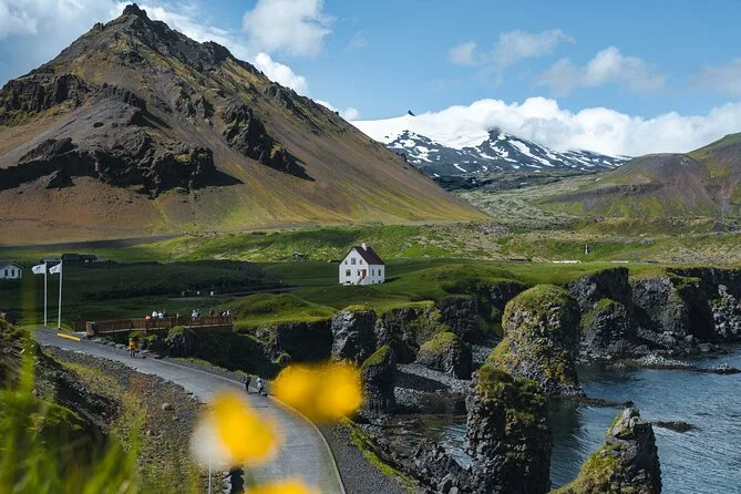 You’ll ride out from Reykjavík into wild landscapes — golden-sand beaches with seals at Ytri Tunga, lonely Búðakirkja against glacier views, basalt cliffs at Arnarstapi, and finally Kirkjufell with its iconic waterfall. Expect real weather, stories from your guide, and moments where Iceland feels bigger than you expected.