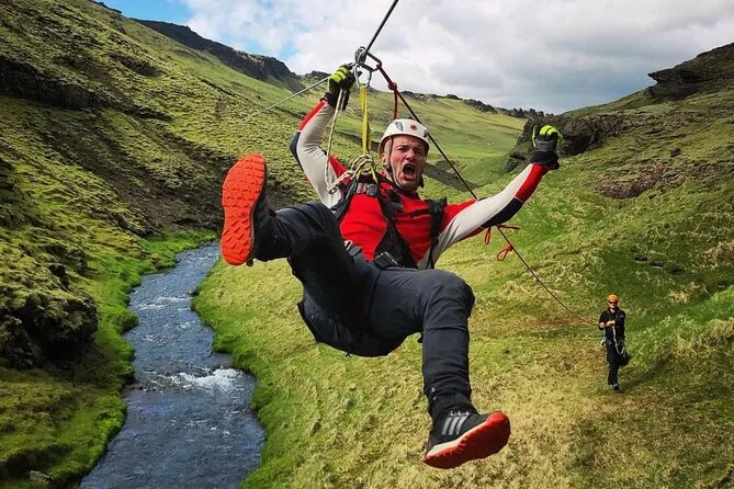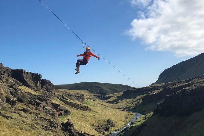You’ll hike through Grafargil canyon near Vík, zipline twice over wild rivers (with all gear included), and take on “The Leap of Faith” with a local guide cheering you on. Expect laughter, small surprises like wild herbs underfoot, and views you might not believe until you’re dangling above them yourself.