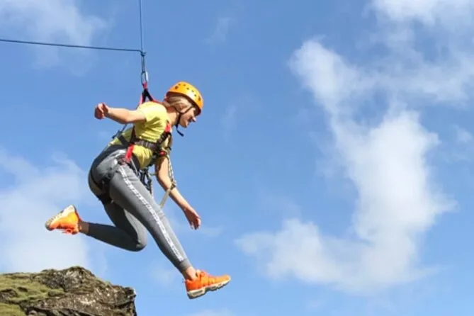 Your day includes all harnesses and safety equipment plus helmet use for every guest. A local guide leads you from start to finish—sharing stories as you hike through Grafargil canyon and soar over rivers on two ziplines before walking back along the old highway together.