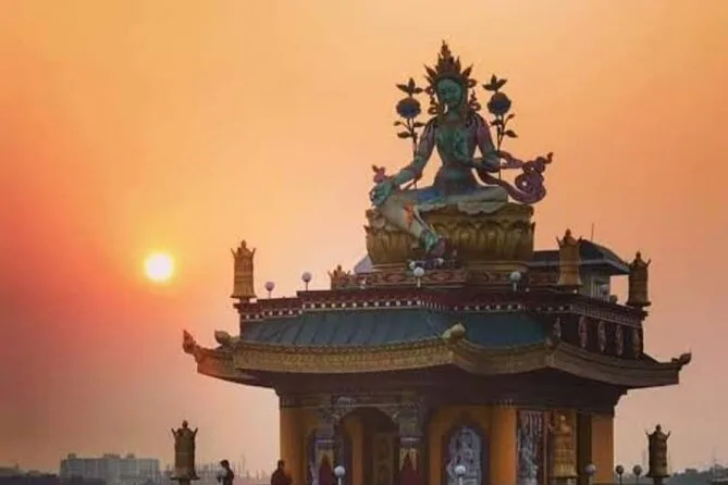 The tour covers Mahabodhi Temple, Great Buddha Statue, Royal Thai Monastery, Royal Bhutan Monastery, Indosan Nippon Japanese Temple, and Metta Buddharam Temple.