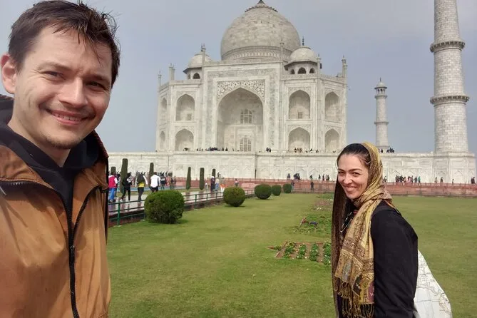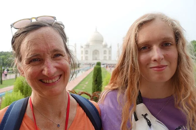You’ll ride from Delhi to Agra in a private cab with a local driver who knows every shortcut and tea stall along the way. Walk through the Taj Mahal’s gardens at your own pace, feel cool marble under your palm at sunrise, sip chai on the road, then explore Agra Fort before heading home as Bollywood songs play quietly up front.