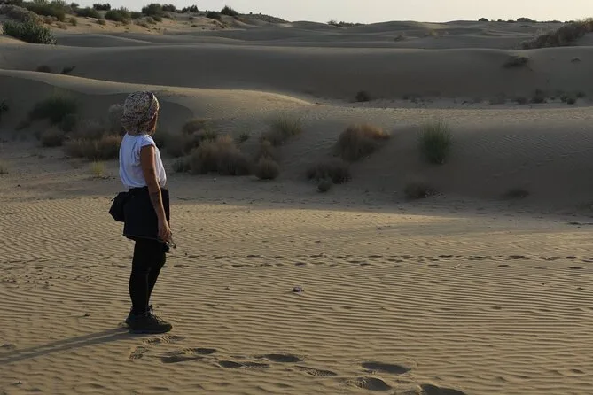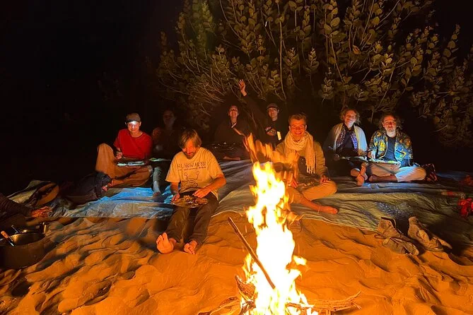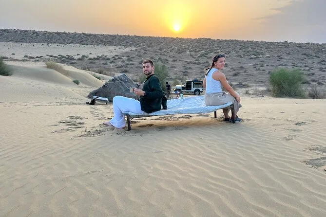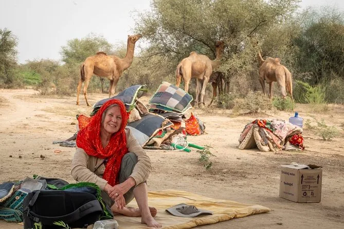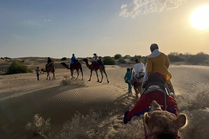 You’ll ride camels across remote Thar Desert landscapes with local guides from Jaisalmer, eat fresh meals cooked over open fire, watch sunset from untouched dunes, and sleep under more stars than you knew existed. Expect laughter, chai breaks, campfire stories—and waking up with sand in your shoes but a grin on your face.