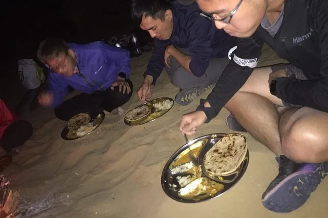Dinner was cooked right there over hot coals — lentils, flatbread, something spicy that made my nose run but tasted perfect after all that dry air. There was this moment where everyone went quiet looking up at the first stars coming out; even Arjun stopped talking for once. Then it was back in the jeep for the ride home to Jaisalmer, still brushing sand off my shoes and thinking about how different everything looked in moonlight. I still think about that view sometimes when it gets noisy at home.